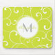 Modern Whimsical Curls Lime Green Monogram Mouse Pad