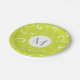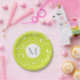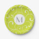 Modern Whimsical Curls Lime Green Monogram Paper Plate