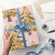 modern whimsical holidays trees gold pink pattern wrapping paper