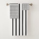 This fun set features classic black stripes in different sizes on each towel. The background is a crisp solid white. Each towel can be purchased separately if you would like to mix the colours.