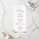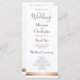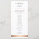 A modern elegant white wedding program featuring two copper/rose gold stripes at the bottom of the card. Ceremony and wedding thanks have been included on the front of the program whilst all of the bridal party have been included on the back.