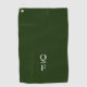 Stay fresh and dry on the golf course with our Modern White and Green Monogrammed Initials Golf Towel. The sleek white design featuring the elegant green monogrammed initials adds a touch of class to your golf accessories. Made from highly absorbent and durable materials, this towel is perfect for keeping your clubs and hands clean and dry during your game. Add a personal touch with your initials and elevate your golf gear with this custom-designed towel.