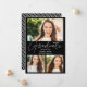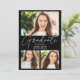 Celebrate the graduate! Modern black and white 3 photos collage graduation with abstract geometric pattern at the back.