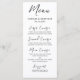 This modern custom wedding menu features a hand lettered black calligraphy script design on a simple white background. Personalize with your names and wedding date as well as your meal choices. Best of wishes for your wedding and marriage! Designed by Susan Coffey.