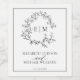 Modern White Black Leafy Crest Monogram Wedding Wine Label