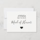 Unique modern and trendy wedding WILL YOU BE MY MAID OF HONOR? cards. White and black background (can be changed to any colour) with stripes and black script calligraphy. Small heart in middle. ADD YOUR MESSAGE / TEXT back of card. Editable templates so you can add your own text. Perfect for any wedding theme or time of year. See collection.