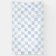 Simple and classy light blue squares created with hand-drawn strokes and composed of two-coloured crossed lines forming a soft baby blue chequered pattern on a white aesthetic grid background. A trendy and unique geometric design.