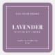 This modern product label has a square white border and an editable background colour (click customize to change). It makes a perfect label for candles, beauty products, etc.