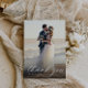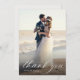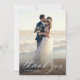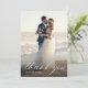 A modern photo card design with white calligraphy and a custom thank you message to your guests.