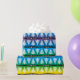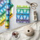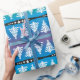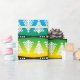 A cute,stylish and elegant white christmas trees pattern on rainbow colours background. Black stripes with white stars add a unique touch to the festive  design with a modern graphic christmas trees pattern.