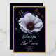 This elegant and modern wedding invitation is perfect for the fall or winter. It features a watercolor-painted gerbera daisy flower with accent flowers, bulbs, and stems. The colour scheme includes white, purple, burgundy red, emerald green, and black, with an actual gold foil border around the invitation. It's classy, contemporary, beautiful, unique, and stylish, the perfect design to impress your guests.