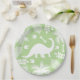 Cute modern white dinosaur brontosaurus silhouette and jungle foliage paper plates.
