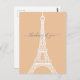Modern minimalist style white Eiffel Tower silhouette graphic on peach background. Customizable "thinking of you" text