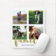 This trendy style of mousepad features a white grid with room for four of your favourite photos. The word "family" appears in modern faux gold foil text with tiny hearts, and there is also room for you to personalize the mousepad with your family name.