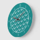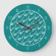 Modern white flower pattern and teal blue border large clock