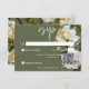 Modern White Gardenias on Sage Sparkle QR Code RSVP Card