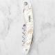 Modern white gold marble corkscrew with a gold monogram and black name. Personalize with your initial and name.
