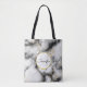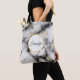 Modern White Grey Marble with Gold Ribbon Monogram Tote Bag