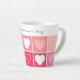 A trendy modern Valentine's Day latte mug with white hearts and red/pink colours. Personalize by adding a personal Valentine's message or name in a beautiful handwritten script font.