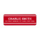 Red or custom colour return address labels with white lines top and bottom and your name in a white, bold font with the return address below. Fonts and colours can be customized with the design tool.