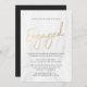 Stylish modern wedding engagement party invitations featuring a faux gold foil trendy script font, white marble background, and placeholders for your custom engagement party information. The back of the gold engagement party invites can be changed to a colour of your choice with the Customize tool.