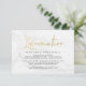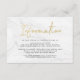 Stylish and modern wedding information enclosure cards featuring faux gold script font, white marble background, and placeholders for your custom wedding details. The back of the gold wedding information cards can be changed to a colour of your choice with the Customize tool.