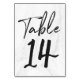 Add a stylish touch to your wedding reception with custom table cards. The wedding table cards feature a white marble background and a trendy script font. Additional numbers can be found in the collection below.