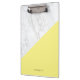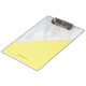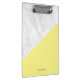 Modern White Marble with Yellow Block Personalized Clipboard | A modern clipboard featuring white marble with pastel yellow block accent. Personalize this clipboard by adding your own details. Other colours are available.