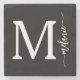 Modern White Monogram Stone Coaster. Personalize with your custom monogram initial and name.