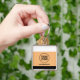 A modern, striped three-tone (white/peach/black) background and block lettering add a bold yet professional touch to this keychain. Personalize with logo and website. Fonts and colours can be modified as desired. Great as promotional giveaways!