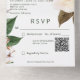 AVAILABLE WITH OR WITHOUT A QR CODE TO SCAN IN THE RSVP AREA. This design features a large white peony with a soft yellow centre, greenery and cotton bolls on a white background. Add a QR code to your invitation so that gusts can quickly access your wedding Website for details, directions, menu options, and more, or add your gift registry Web URL. Personalized All-In-One invitations are a unique combination of both a beautifully printed custom invitation with an easy to tear off perforated RSVP postcard. And they are so easy to use! You simply fold, then seal the back flap with the three included clear stickers, and mail. And when your guests receive your custom invite, they just tear the perforated RSVP Card off and drop it back in the mail to you!