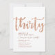 Simple white & rose gold "Thirty" personalized 30th birthday invitation with classy and modern typography. Customize with name, age, and party details.