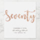 Minimalist 70th birthday white and rose gold wine bottle label in modern, chic and elegant typography style. Featuring age "seventy" in sparkly rose gold. Customise with age, name, and year of birth.