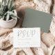 This modern wedding RSVP card features bold handwritten lettering on crisp white with a stylish sage green back. A perfect blend of minimalism and charm, it's ideal for rustic, boho, or modern weddings. Easily customize with your RSVP date and guest response details.