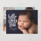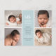Modern birth announcement with one photo on the front and four on the back, accompanied by elegant white calligraphy script. All the colours can be customized. It can be personalized with your own message and baby stats.