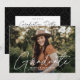 Invite guests to celebrate the grad with our stylish photo graduation invitations. The graduation invitations feature the graduate's photo with "Graduate" in a white modern calligraphy script overlay. Personalize the front of the modern graduation invite by adding the graduate's name, school name, and graduation year. The invite reverses to display your graduation party details and a trendy black and white dotted geometric pattern.