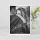 Modern White Script Photo Wedding Save The Date, This trendy, elegant beautiful calligraphy lettering in white overlays your photo save the date card. Invitation features a beautiful free-spirited hand-written Save the Date script. All text are simple to edit. A stylish and simple invitation that will highlight your date's personal photos!, Click the edit button to customize this design.