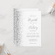 The left-hand edge of this elegant modern wedding invitation features a silver faux glitter design. The customizable text combines grey handwriting, copperplate and italic fonts on a white background. The reverse side features a matching white and silver glitter design.