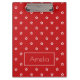 Modern and stylish personalized clipboard with white star pattern on bright red.