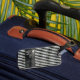 Cool and modern design of distressed white stripes on a black background, personalized with the guitarist name... to carry around the band instruments in style