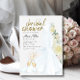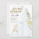 Modern white watercolour wedding dress, with lovely white floral bouquets. An elegant chic bridal shower invitation.