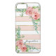 Cute. Girly. Feminine. Beautiful, hand painted watercolor roses with baby's breath, vines and wide striped background pattern for a modern, BOHO Chic style personalized phone case that is both inexpensive and beautiful! Change the name using the easy template fields provided. The white, wide striped background can be changed to any colour you would like to go with the soft blush pink. Art copyright Audrey Jeanne Roberts, all rights reserved.