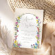 This modern wildflower floral wedding invitation is perfect for boho and country rustic weddings, in spring summer, and fall. The arch is decorated with whimsical colourful watercolor wildflowers and the design is complemented with the elegant calligraphy script. Please check out the collection for the rest of the matching wedding invitation suite and more matching products.