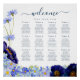 Modern wildflower watercolor blue themed 12 table wedding seating chart sign with easy to use templates. Elegant typography script with hand painted spring and summer florals including cornflowers, poppies, cosmos, forget me nots and delicate green foliage. Unique artwork in blush blue, navy blue, cornflower blue and purple hues by artist Catherine Sweetman