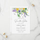 This is a lovely fresh and modern save the date invitation. The design features a variety of spring wildflowers including yellow daffodils, purple pansies, clovers, lavender, sweetpeas, dandelions, tulips and fern and ivy greenery. It also includes a few ladybirds, a sweet dragonfly and a message and photo on the back.