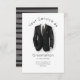 Modern Suit and Tie, Will you be my Groomsman proposal request card. Features a casual pose with black suit and tie. The back is a black and grey stripe. The wording Your Service as Groomsman is requested can be changed. Need help, just let me know at tkatz@me.com