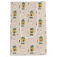 Our Modern Winter Holiday House Gift Bag design features a cozy winter scene with snowman, house and trees covered in snow, and falling snowflakes on blush background.