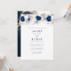 Modern Winter Photo Blue & White Floral Wedding Invitation