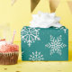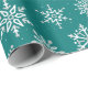 Simply elegant gift wrap for winter holidays and events. White and light grey snowflakes of slightly varying sizes on a teal (blue-green) background. Design is available in a curated collection of modern holiday colours. Contact us for any customizations. Happy holidays!