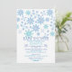 Invite your guest with our contemporary winter gender neutral baby shower invitation featuring beautiful blue snowflakes set on a white background. Flip our modern & stylish neutral baby shower invite for girls or boys over to view a matching snow back!